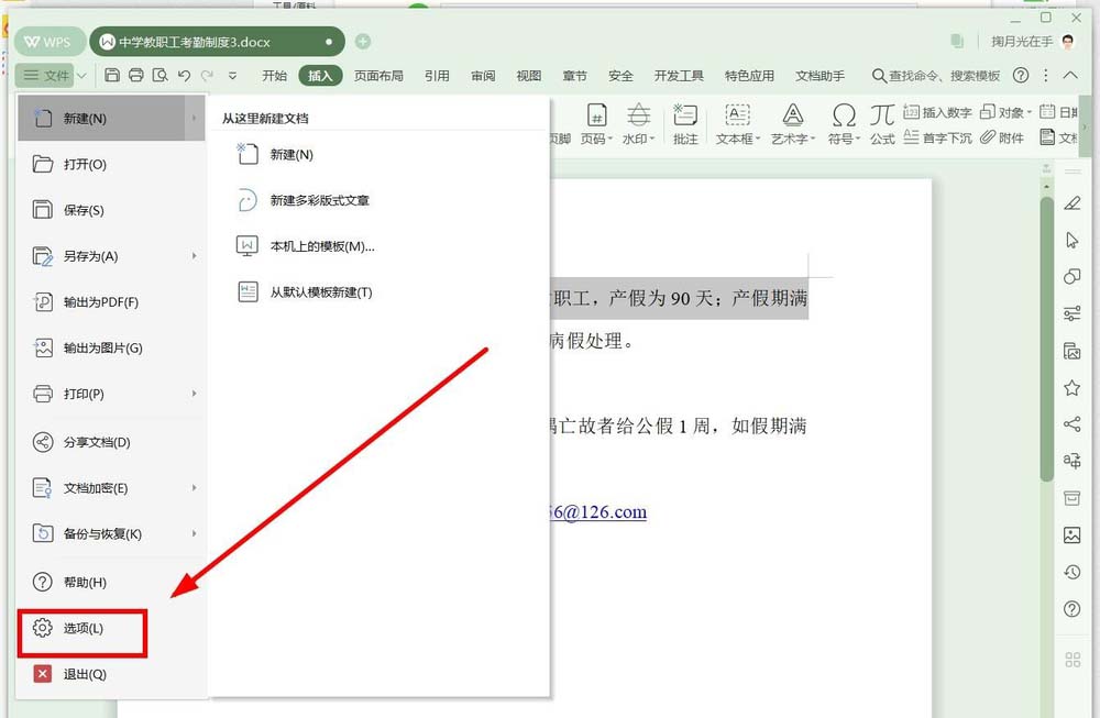 3、在下拉列表中,右下角有个“选项”单击