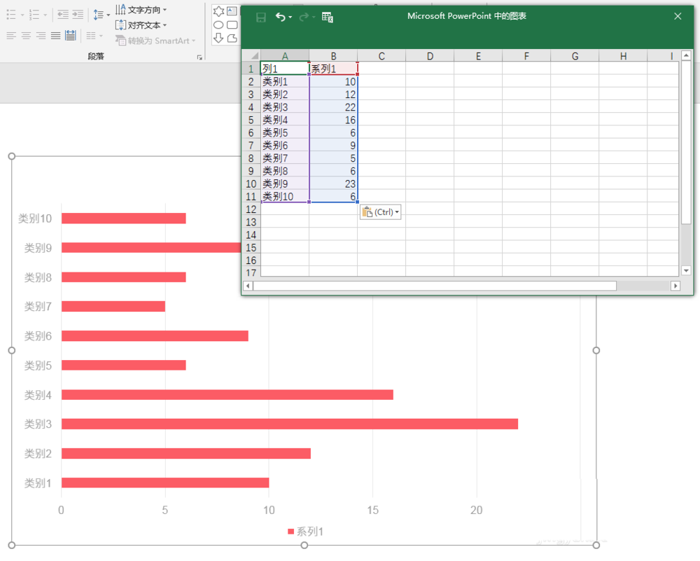 4、将源数据表只保留一列数据,就得到了只有一列数据的簇状条形图。