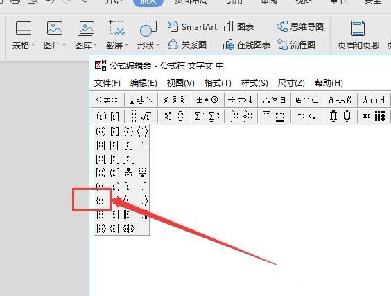 4、在弹出的下拉列表中,选择左括号,然后编辑器中就会出现左括号了(如下图)