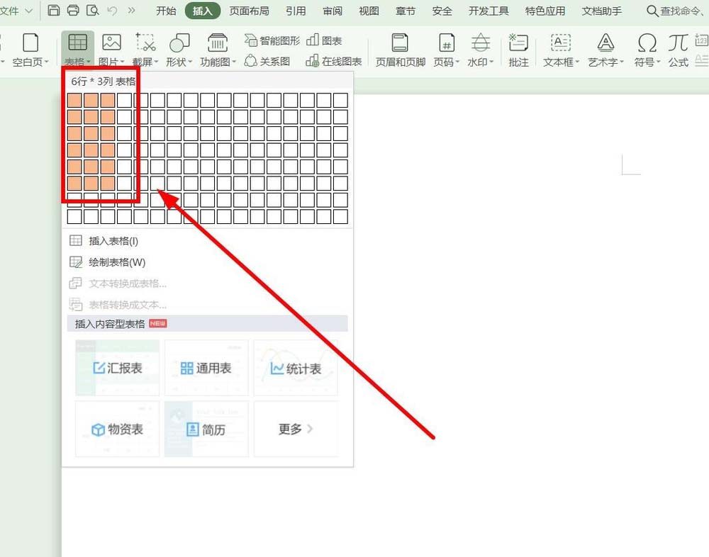 2、单击菜单栏中“表格”。选择插入一个6行3列的表格