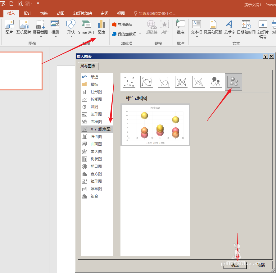 2、点击【插入】—【图表】—【XY散点图】—【三维气泡图】。