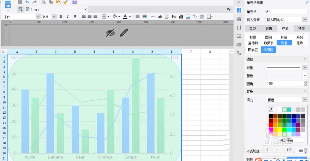 6、最后修改图形样式,分别设置背景中的图表区和绘图区,如下图所示: