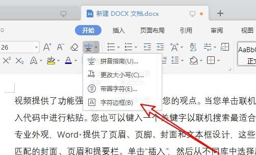 3、在弹出的下拉菜单中我们选择“字符边框”的菜单项。