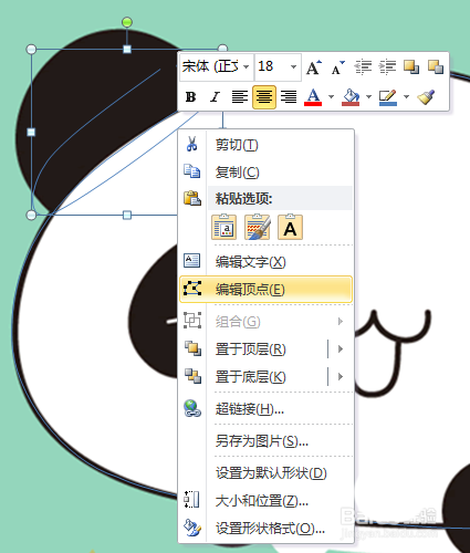 4、将鼠标放到线条上调整线条的弧度,勾画好熊猫的头;