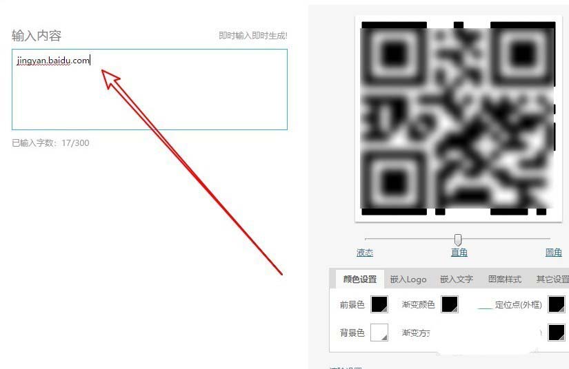 4、接着在打开的生成二维码窗口中,我们输入要制作的网址或是其它内容