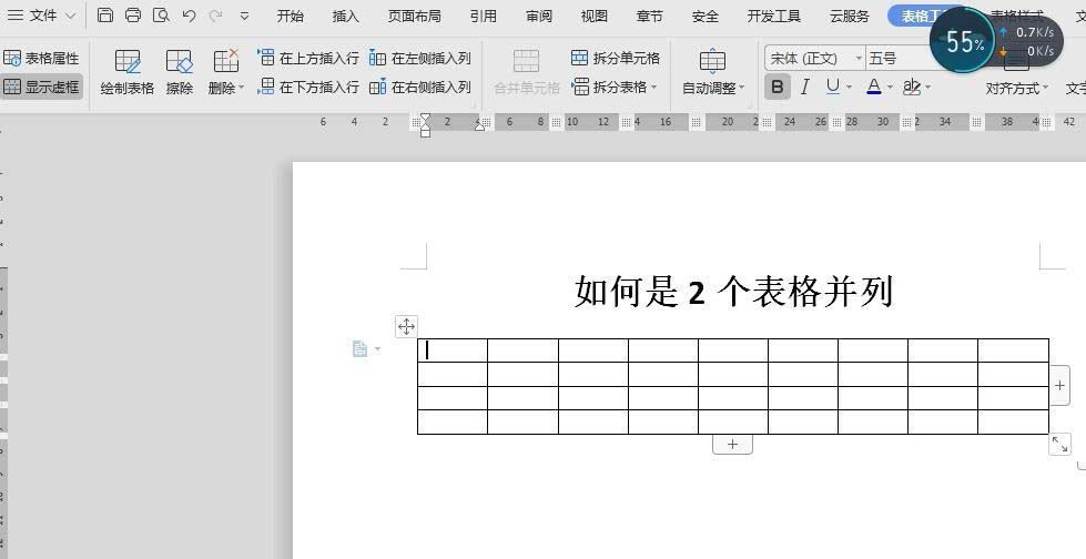 wps2019文件中需要用到两个表格,该怎么绘制两个表格并让表格并列显示呢?下面我们就来看看详细的教程。