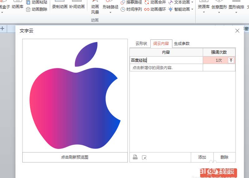 6、这样就自动生成了一个苹果形状的文字云效果。