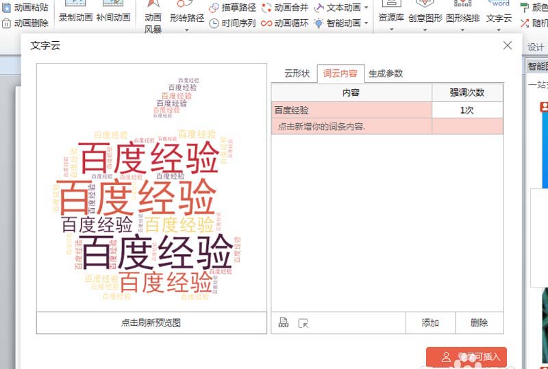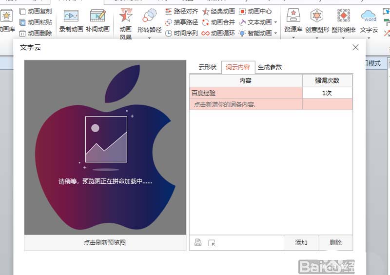 5、接着在左边的文字云中,点击下面的刷新预览图,自动进入生成阶段。