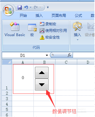 6、在需要插入数值调节钮处单击鼠标左键。此时就出现数值调节钮。