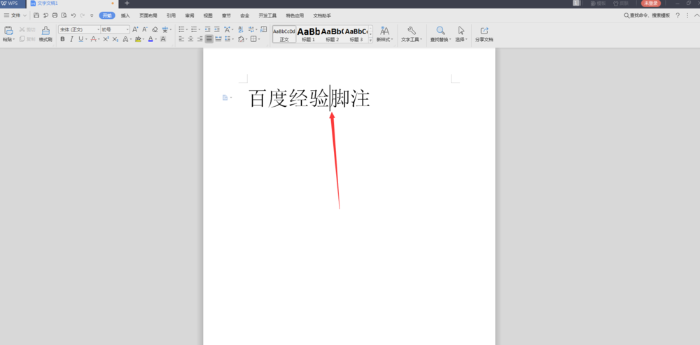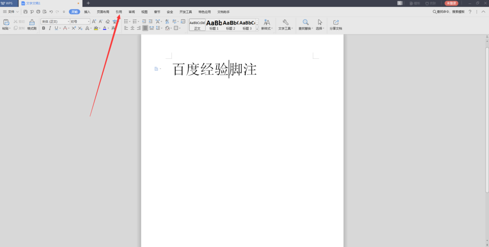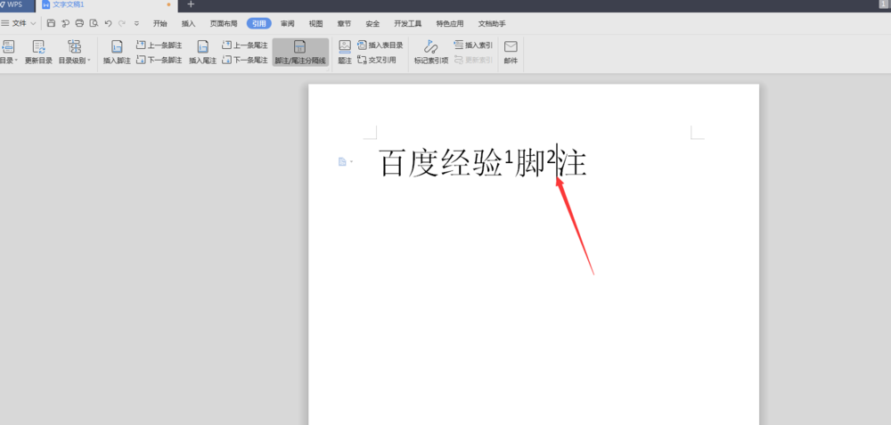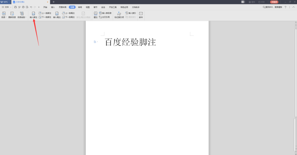 3、接下来我们从下图中箭头指向的位置,点击插入脚注。