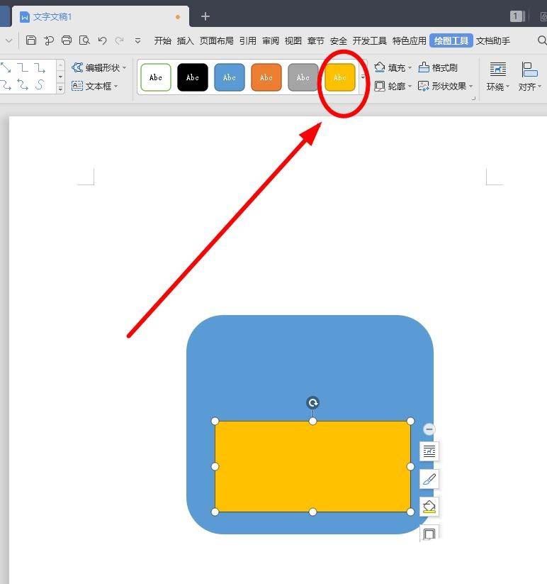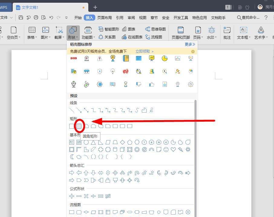 2、在下拉菜单中选择“圆角矩形”单击,在背景色中画出一个矩形