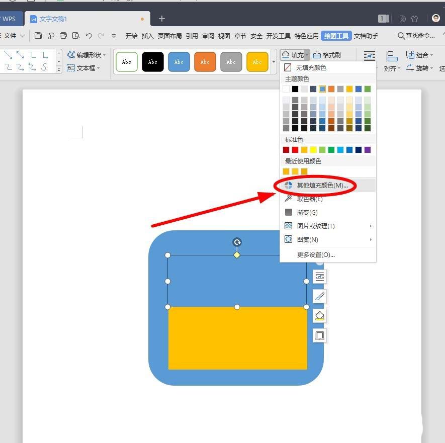 6、同样的方法我们在插入一个等边三角形做为信封的封舌。还是“无轮廓”,颜色选用“橙色”之后,再单击“填充”的下拉菜单中的“其他填充颜色”