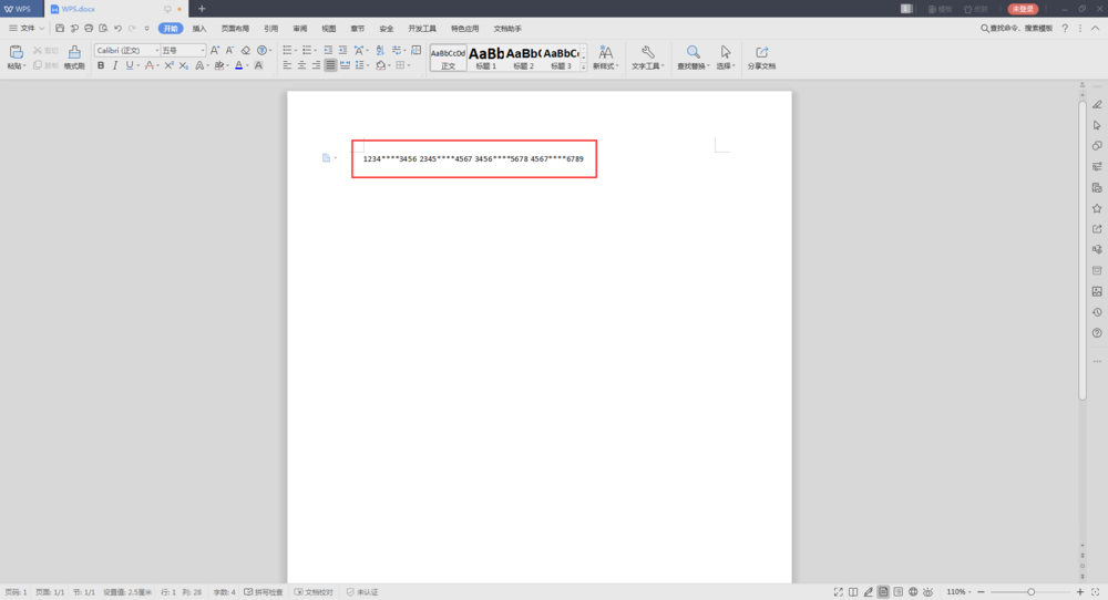 1、打开WPS,然后我们新建一个空白文档,输入相关的数字