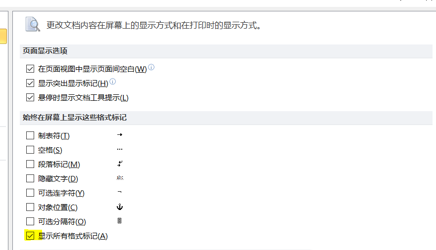 5、勾选显示所有格式标记