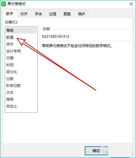 3、这时就会弹出单元格格式的窗口,在窗口中点击左侧的“数值”菜单项。