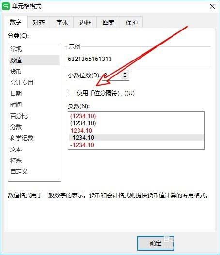4、接着在右侧的窗口中我们找到“使用千位分隔符”设置项。