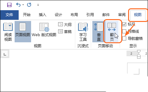 1、在【视图】标签下单击【翻页】按钮,如下图所示。