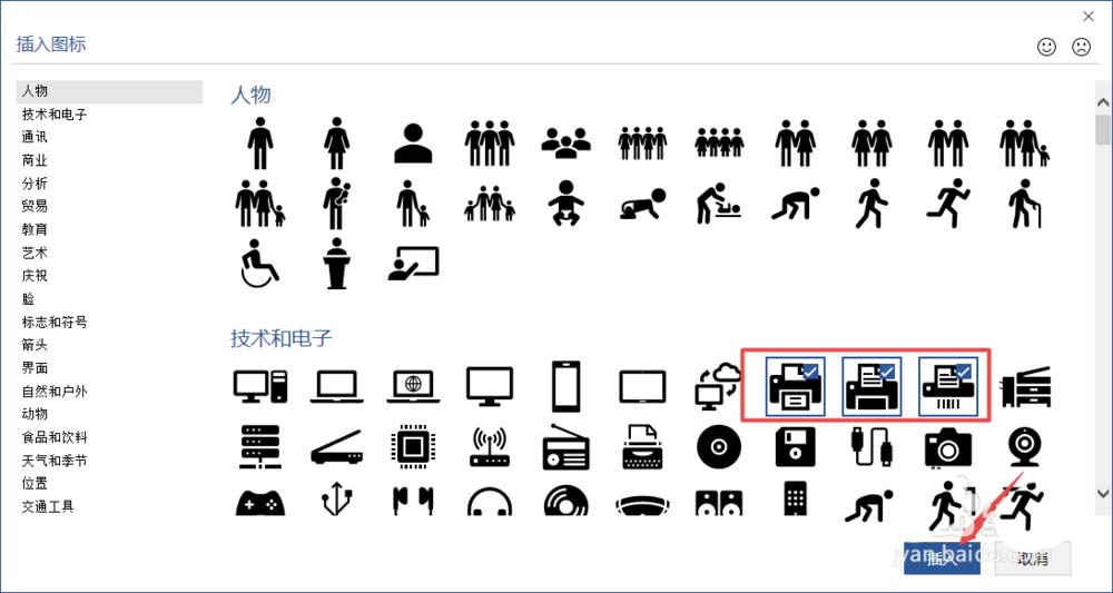 5、我们点击技术和电子中的几个图标;