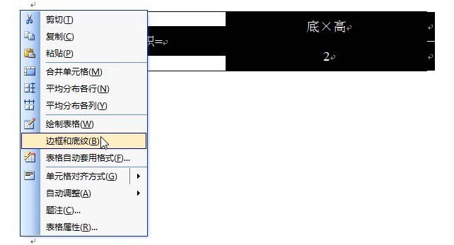 在键入等式和分子式的具体内容后,选中整个表格→单击鼠标右键→点击“边框和底纹”。