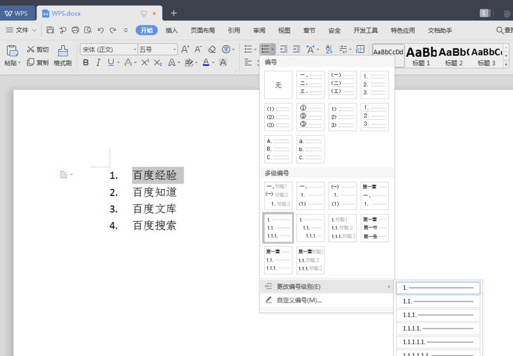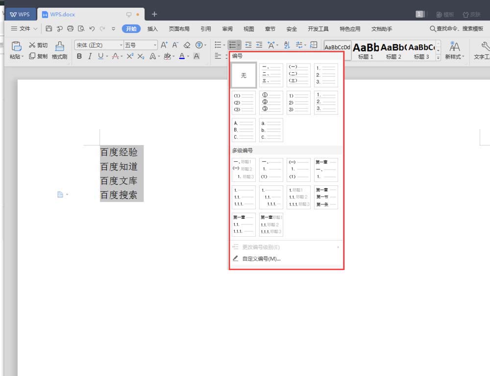 WPS文章中怎么插入数字编号?