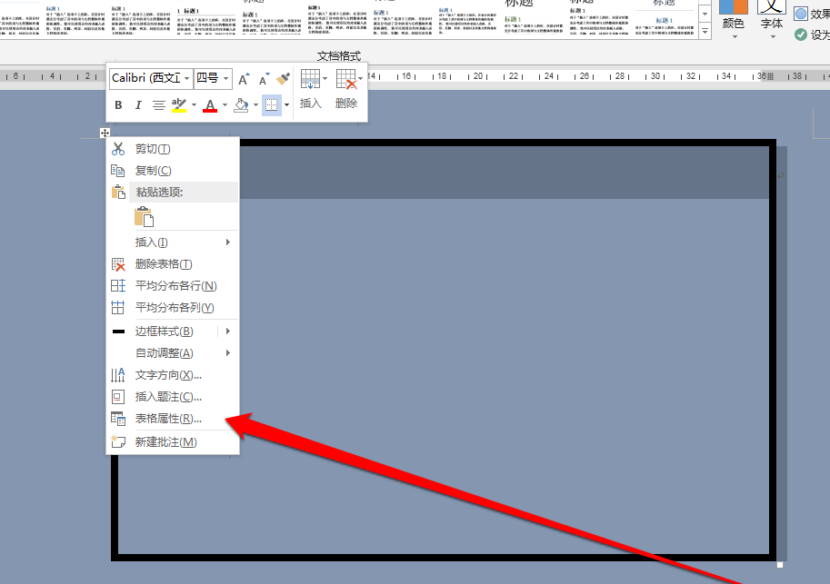 3、选中表格后,点击右键选择表格属性设置按钮。