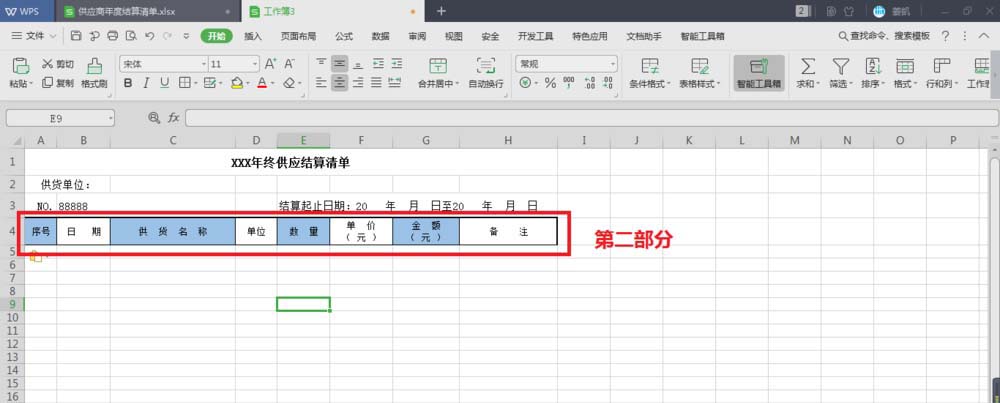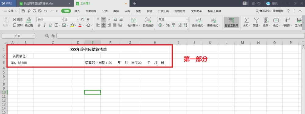 1、首先我们打开Excel后,先确定基本信息,公司名称,结算年份,本表是否需要表单号等。