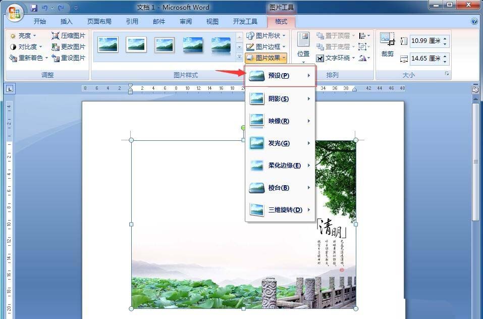word中给图片添加预设效果,可以起到对图片的美化修饰作用,该怎么使用预设效果呢?下面我们就来啊看看你详细的教程。