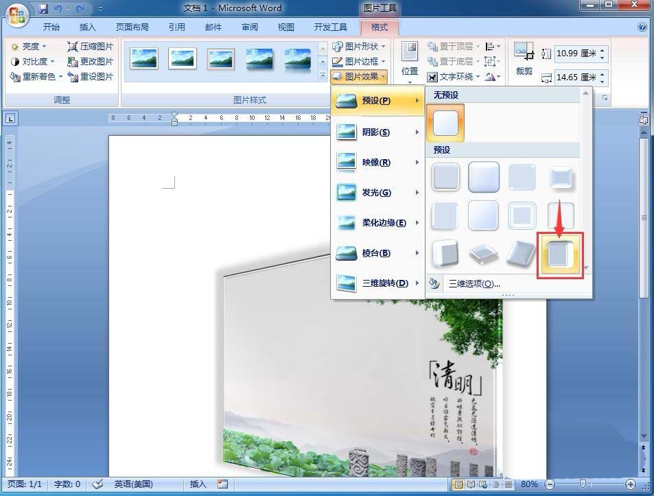 7、我们就给插入的这张图片添加上了漂亮的预设效果。