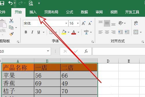 2、接着我们点击excel2016菜单栏上“插入”菜单项。