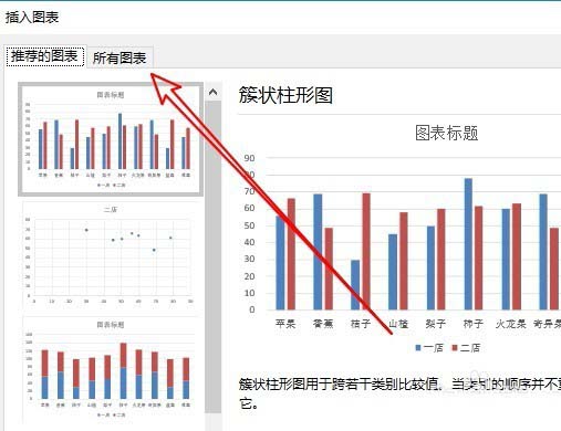 4、这时就会弹出插入图表的窗口,在窗口中点击“所有图表”的选项卡。