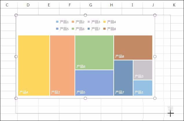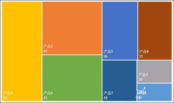 5、可看到设置好的树状图效果,通过图表中的图块颜色和大小,可很容易分清比例关系,如下图所示。