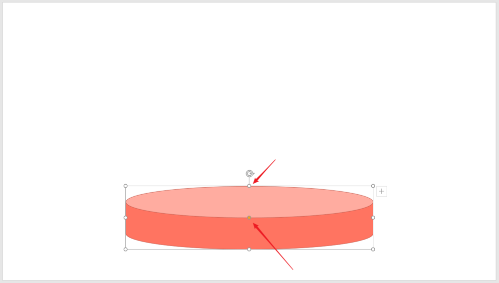 4、选中圆柱形,拖动黄色的控制点,改变俯视角度,拖动白色的控制点,改变厚度。