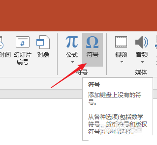 3、光标在本文框中,点击插入符号。