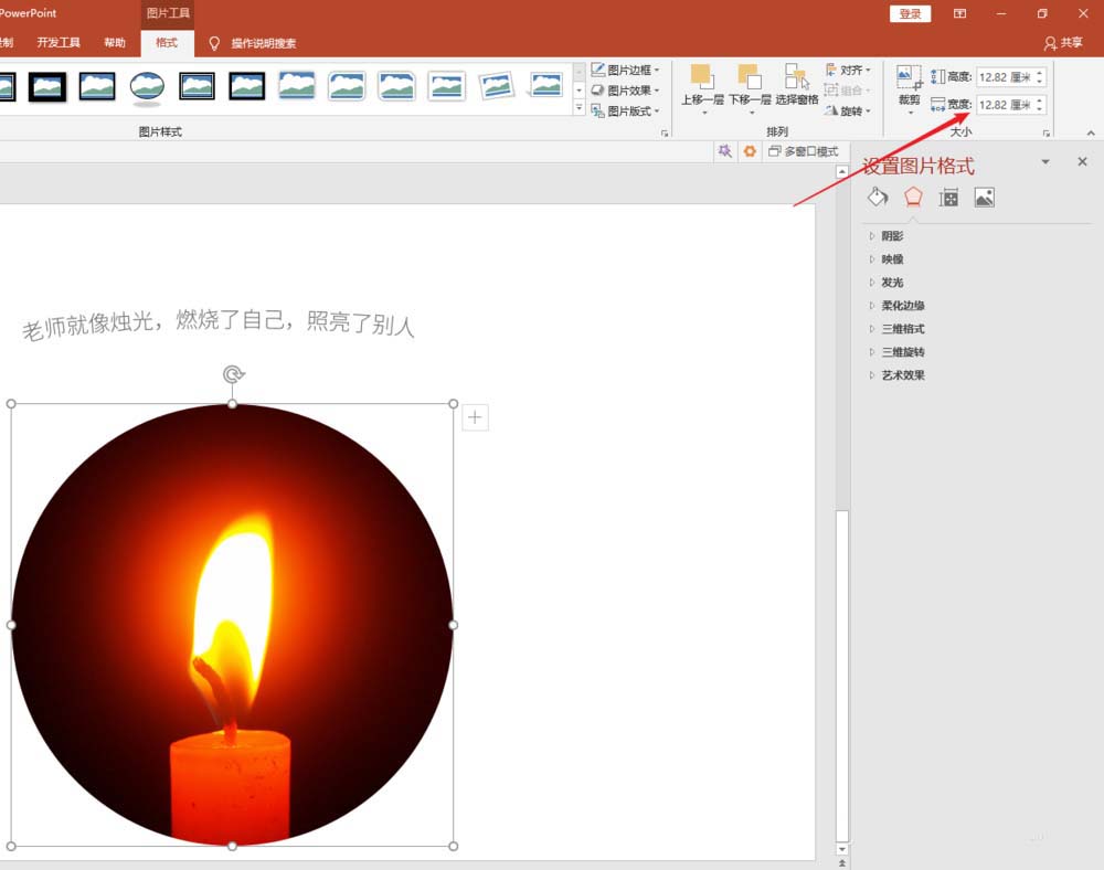 6、选中图片,确定下图片的高度和宽度。