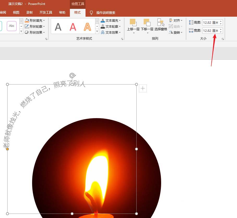 9、如果改变了字体和字号,那么就需要修改文本框的尺寸,保持与图片贴合,就得到了最终的效果。对于图形,操作是一样的。