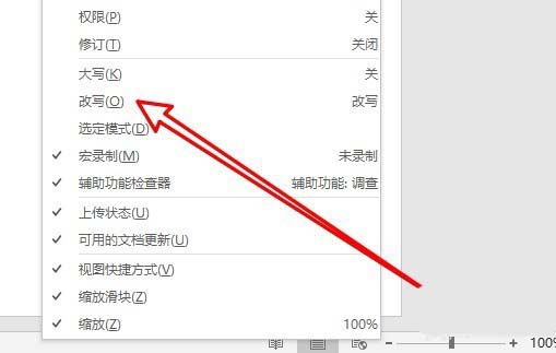 4、这时可以看到在word2019的状态栏添加了一个“改写”的图标