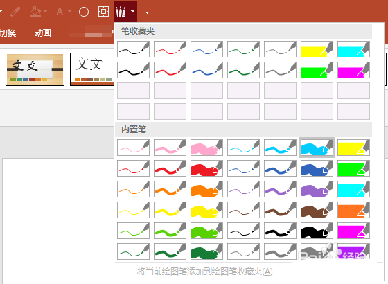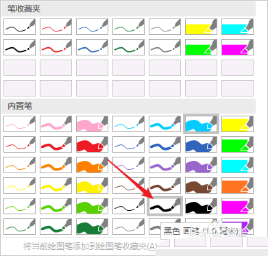 3、点击笔命令,可以看到软件内置有多种颜色、多种样式、多种粗细的笔。