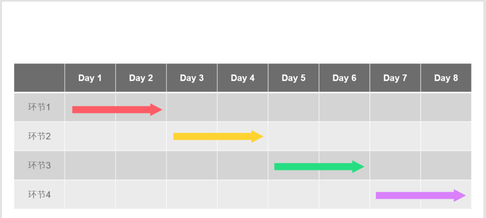 5、将箭头复制多份,分别放置在环节所跨越的日期单元格中。