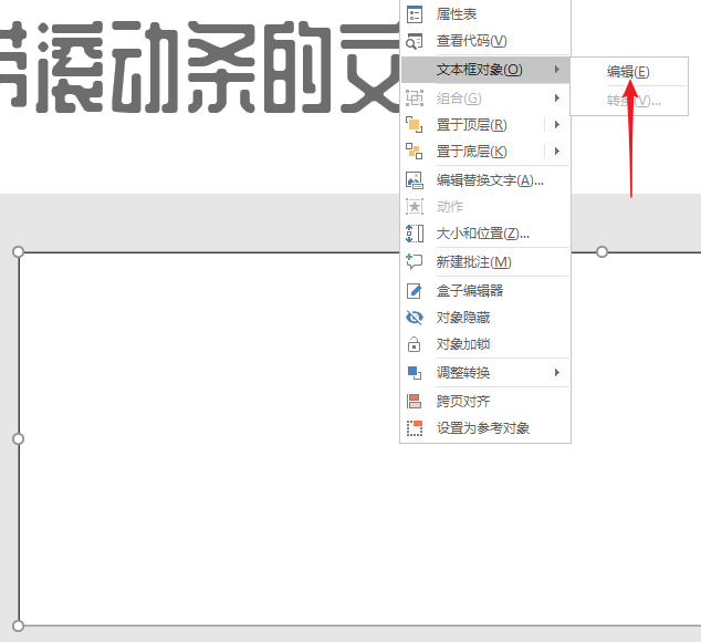 8、设置完成后关闭属性表,右键控件点击编辑文本框对象。