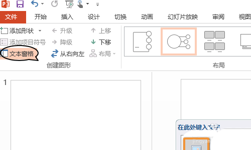 3、选择以后点击确定关闭对话框,然后点击“设计”-“文本窗格”然后在键入文本左侧依次按照自己的主题插入图片,注意一定不要把图片的顺序搞混了;