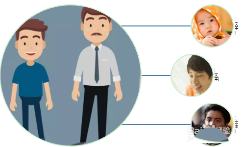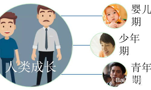 4、下图一就是小编全部插入对应的图片之后的流程效果图,很明显这是一个关于人类成长的过程流程图,不过还不够完美;