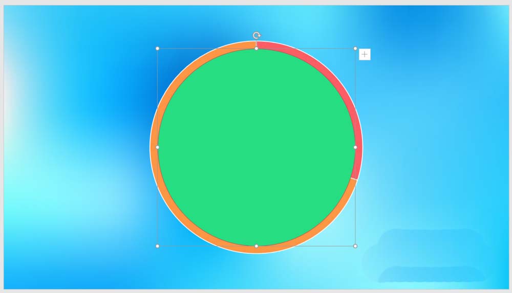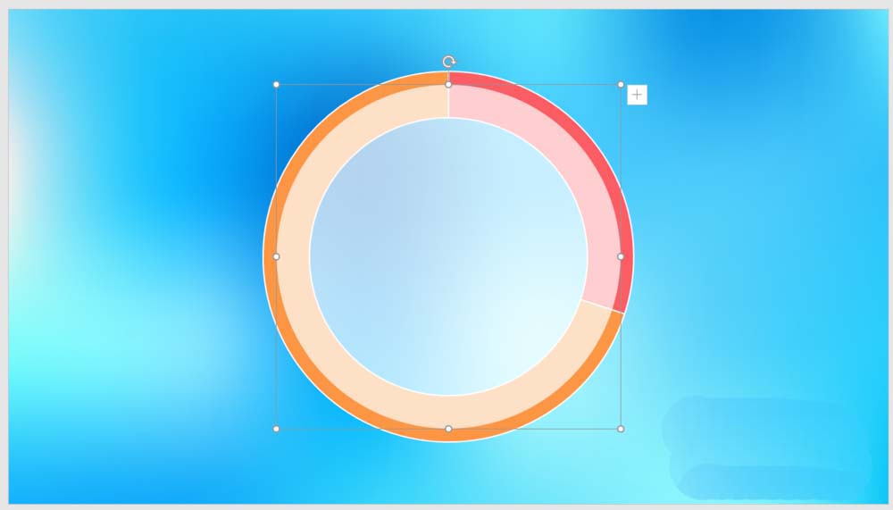 PPT中可以制作毛玻璃效果的圆环图,如图所示,该怎么制作这个效果呢?下面我们就来看看详细的教程。