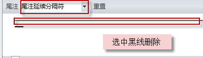3、尾注选择尾注分隔符,把出现的黑线删除。尾注再选择尾注延续分隔符,把出现的黑线删除。切换回文档视图发现黑线已经消失了。