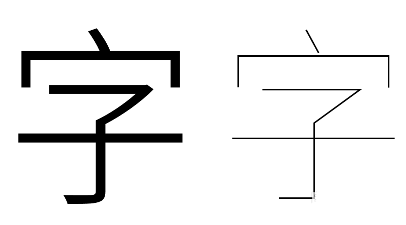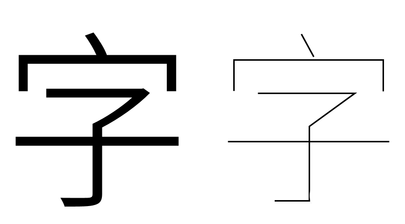 7、然后给组合形状设置线条颜色和适当的粗细。与原文字对比,就能看到,组合的文字笔画非常细。