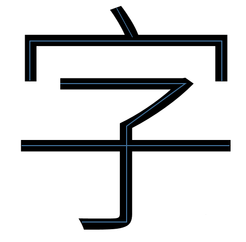 4、沿着文字的笔画进行绘制线条或多线段。