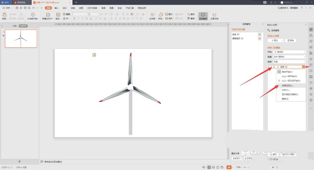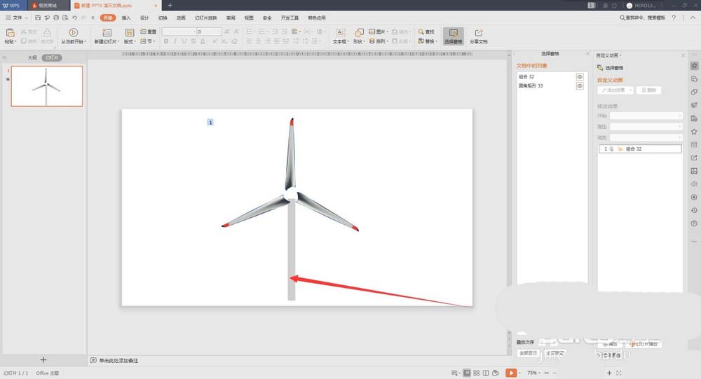 现在很多地方都能看到风力发电机,想要使用ppt制作风力发电机扇叶旋转的动画,该怎么制作呢?下面我们就来看看详细的教程。