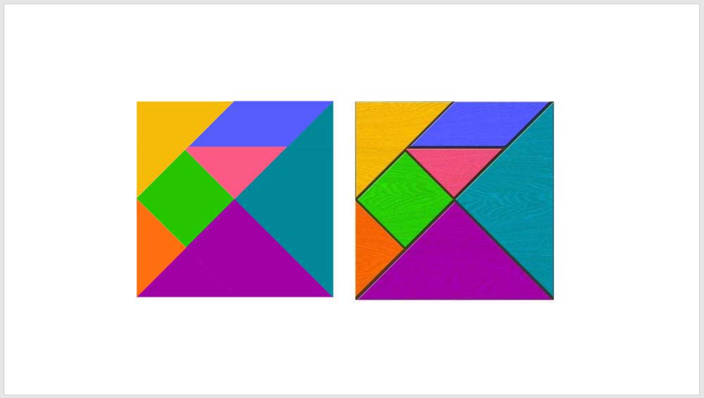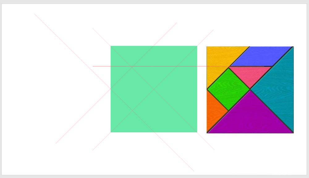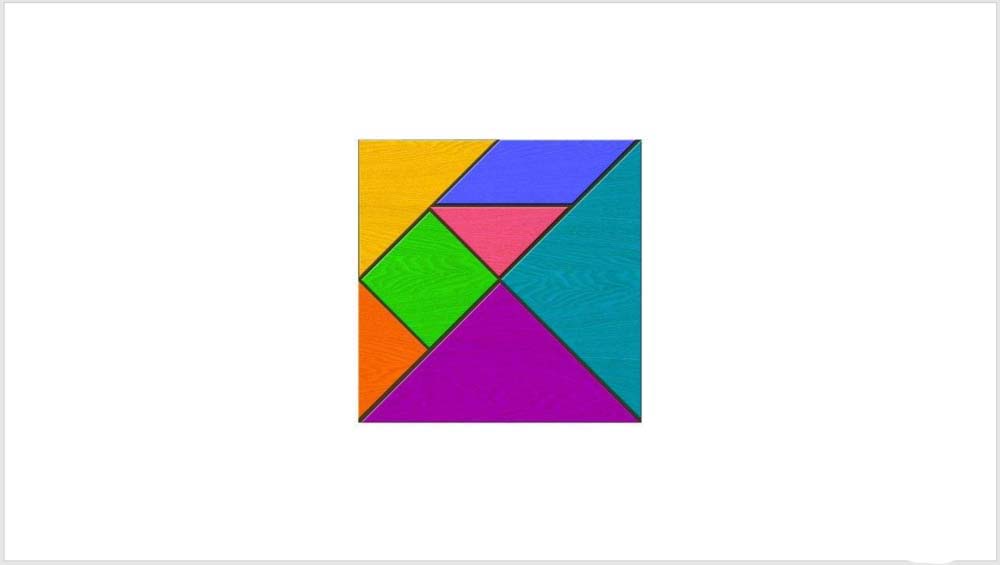 10、最后,给每一块比照图片设置上不同的颜色,就得到了无缝衔接的七巧板形状。