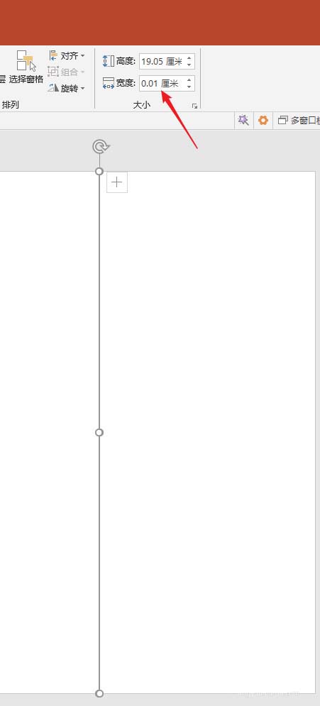 4、插入一个矩形,将宽度设置为最小的0.01厘米。