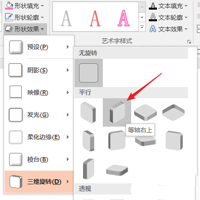7、再复制一个组合形状,执行等轴左下三维旋转。
