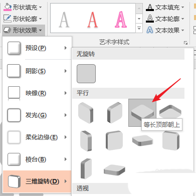 5、把组合形状复制一份,执行等长顶部朝上三维旋转。